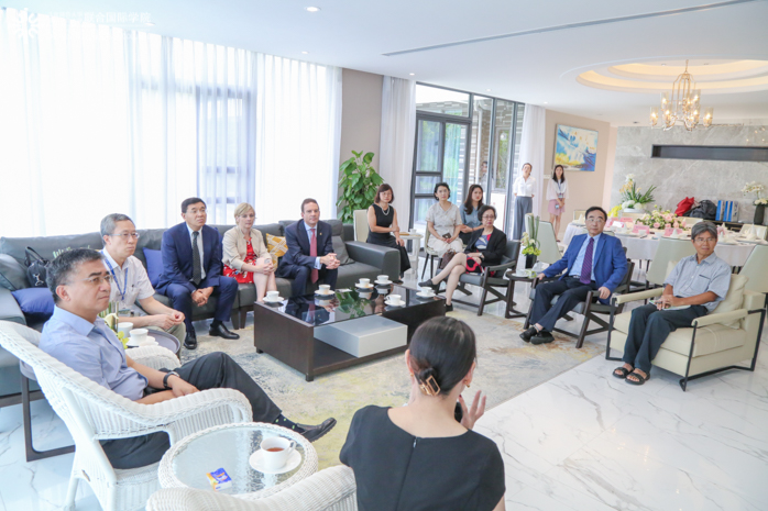 中午,汤涛校长在雅园欢迎逯高清教授一行的到来,副校长张聪教授、协理副校长魏楚雄教授及工商管理学部院长左龙佩兰教授、理工科技学部院长黄华雄教授等出席座谈交流会。逯高清教授表示,希望两校能加强交流,共同商讨关于暑期项目、交换生、学生深造等合作事宜。