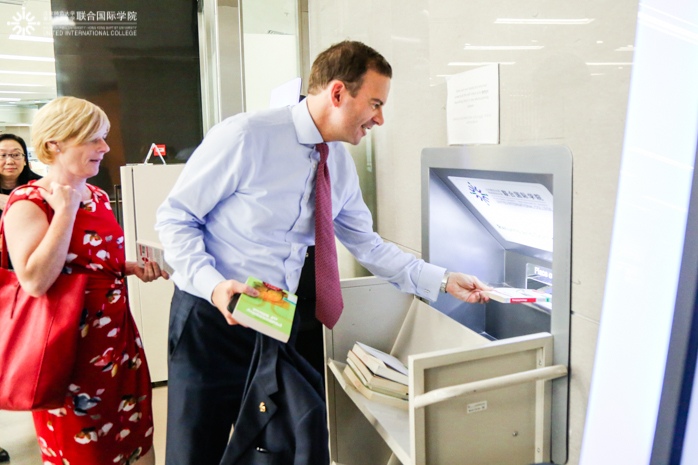 随后,Patrick Degg及Sarah Litchfield在魏楚雄教授、四维教育协调处处长林美玉、国际发展处副处长李媚的陪同下参观了雅乐堂及学习资源中心,了解UIC的中国传统文化课程及先进的设施设备。